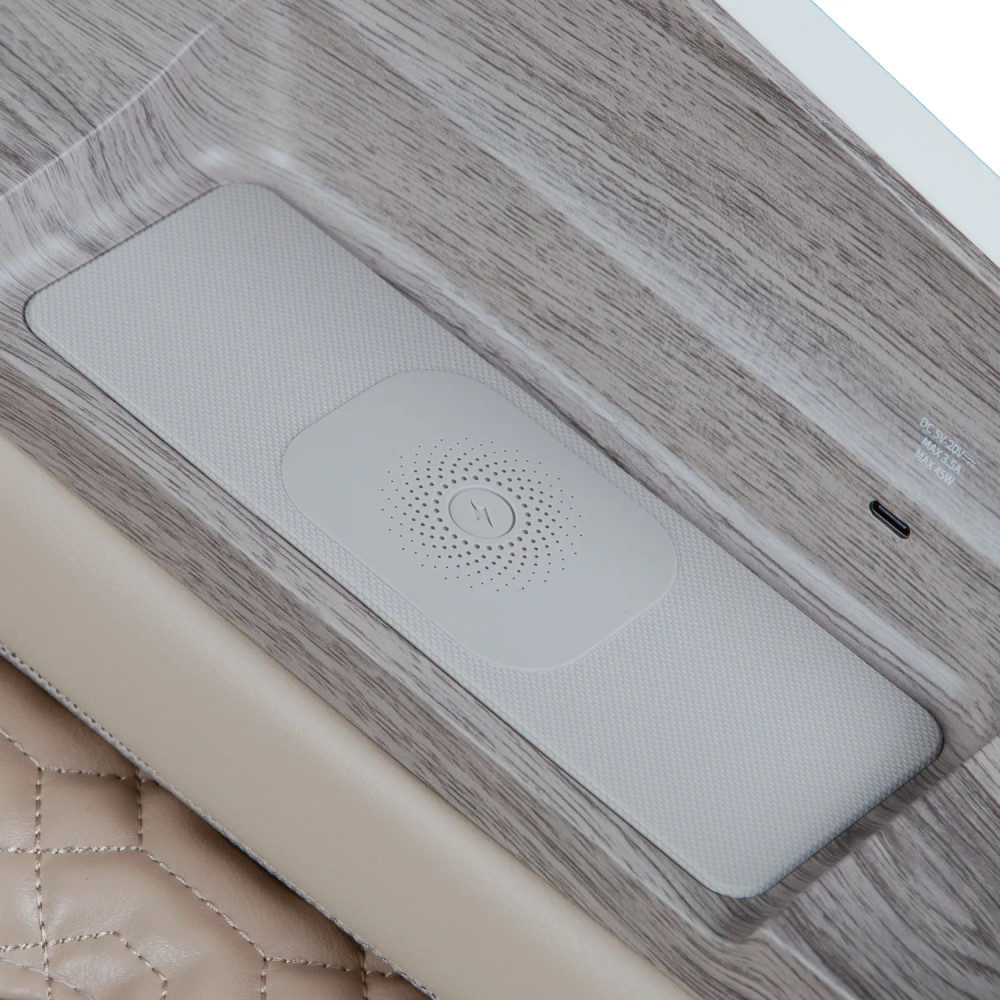 Nirvana Pro Ai 4D + 5D, masaj keyfi sırasında mobil cihazlarınızı kablosuz şarj ve Type-C portu üzerinden kolayca şarj etmenizi sağlar.